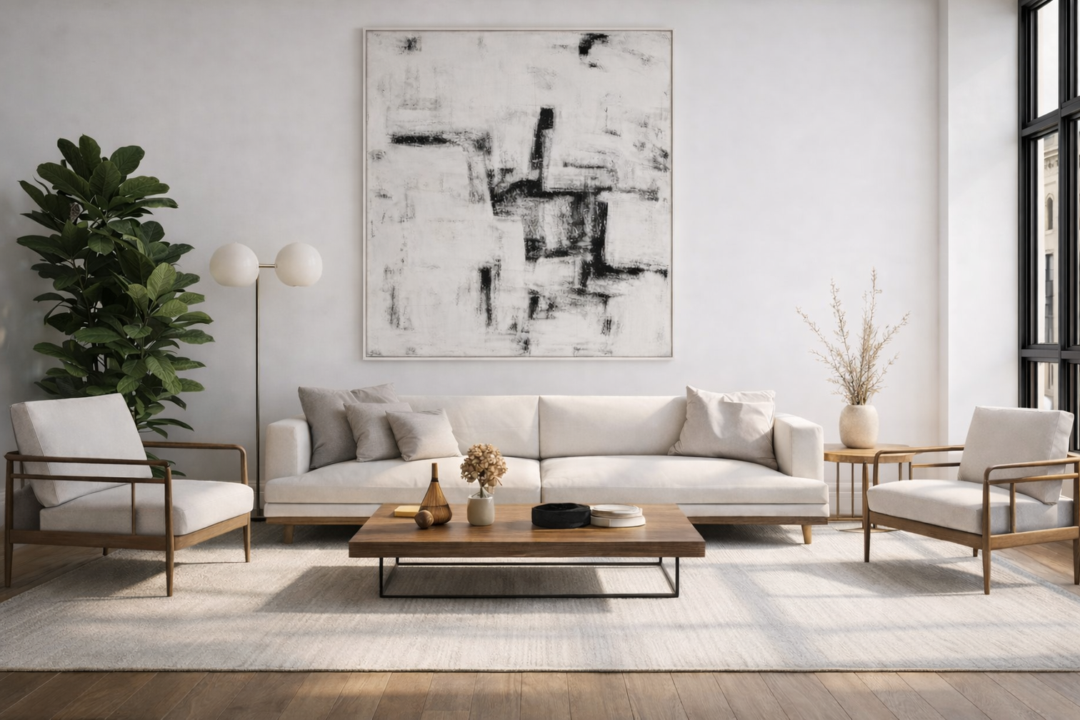 Folding Room Divider with Arched Panels and Display Rails
